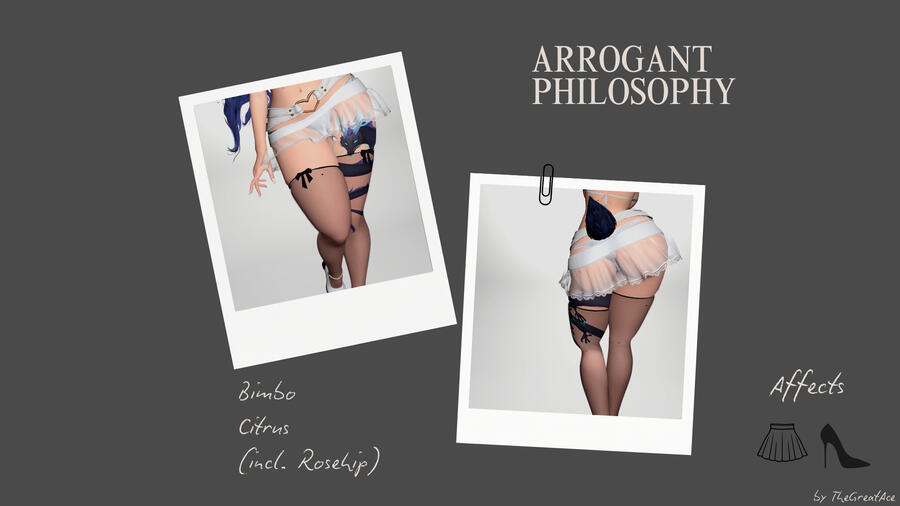 Commissions can and will subject to be placed on my portfolio/sites, unless otherwise specified!I can work with Customize+ and/or physics, but please keep in mind to not expect complete perfection. You should expect clipping especially if you're using profiles that significantly change your body from the "intended" setting (bigger OR smaller). Because of this, I will add fees accordingly.Contact me on Discord (.thegreatace.) or my Ko-Fi for inquiries.I reserve the right to deny any sort of request for any reason, especially if the transaction is deemed a breach of boundaries.Turnaround time is now up to two weeks due to the increase of demand (I do not work on weekends though). However, my life is put first and foremost. If any sort of unexpected event that interferes with work may happen, you will be notified as soon as possible.Payment is generally required before mod delivery, unless you are a trusted client, in which case you can pay after commission satisfaction. I accept PayPal and Ko-Fi.NO REFUNDS.
